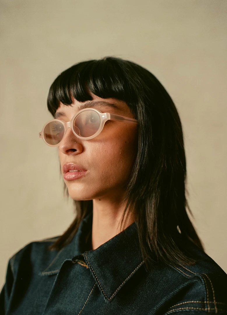 Handmade in Japan acetate frame. Stainless steel cores for strength, flexibility, and an adjustable fit. Extra sturdy and durable zinc-free barrel hinges. Optical-quality nylon lenses with 100% UV protection. Cherry Leather case and cloth included.