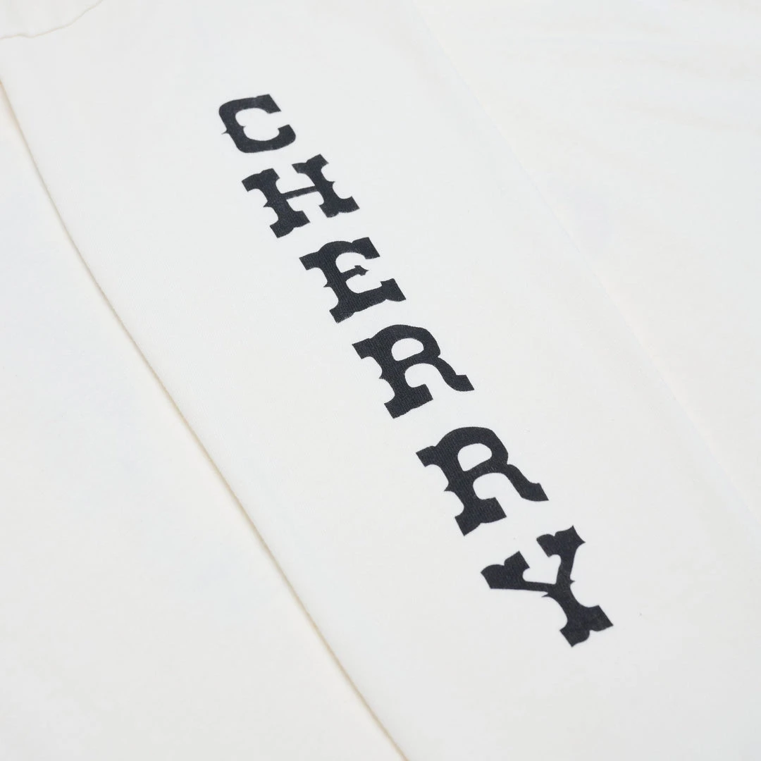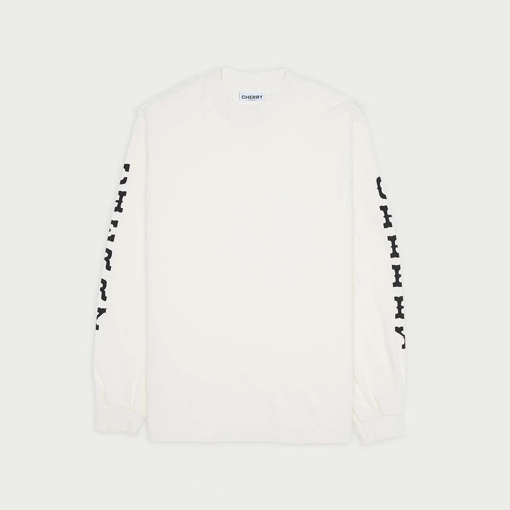 10oz USA 100% Cotton 2 ply. Long Sleeve Heavyweight T-Shirt. Garment dyed then washed for soft hand-feel. Hand printed with plastisol ink on sleeves.