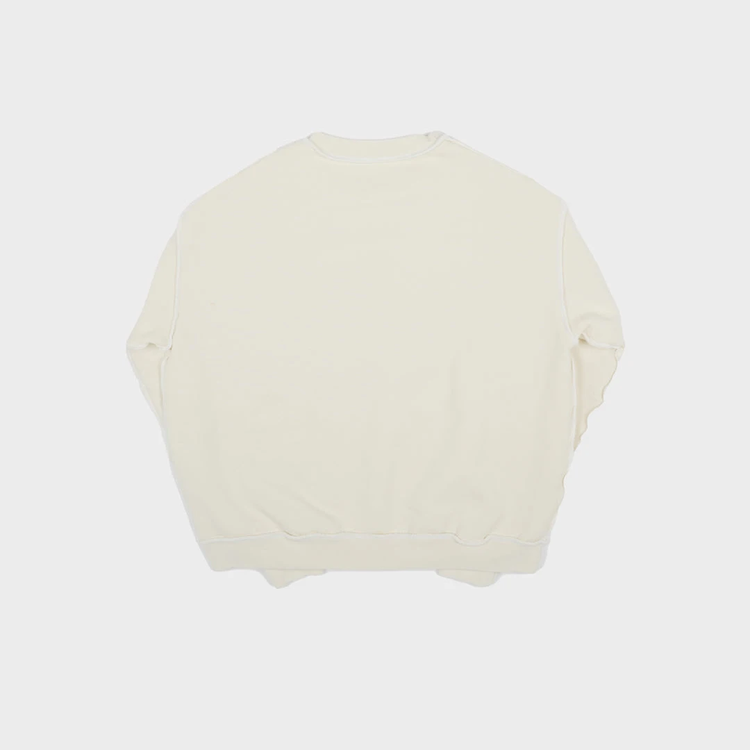 16oz 100% USA Cotton Heavy Fleece. Fits true too size. In side out, with exposed seams. Garment dyed and rinsed for soft hand-feel. This sweatshirt was designed to be worn inside-out!