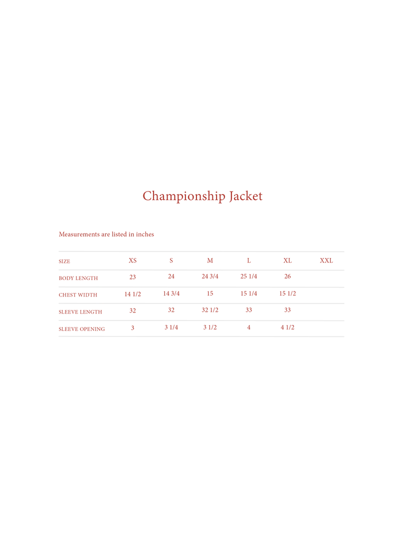 Cotton nylon blend outer with 100% cotton printed lining. Raw nickel 2-way zipper, hidden nickel snap closure on neck. Custom ribbing dyed to match. Single needle embroidery on chest, right arm and back.Â