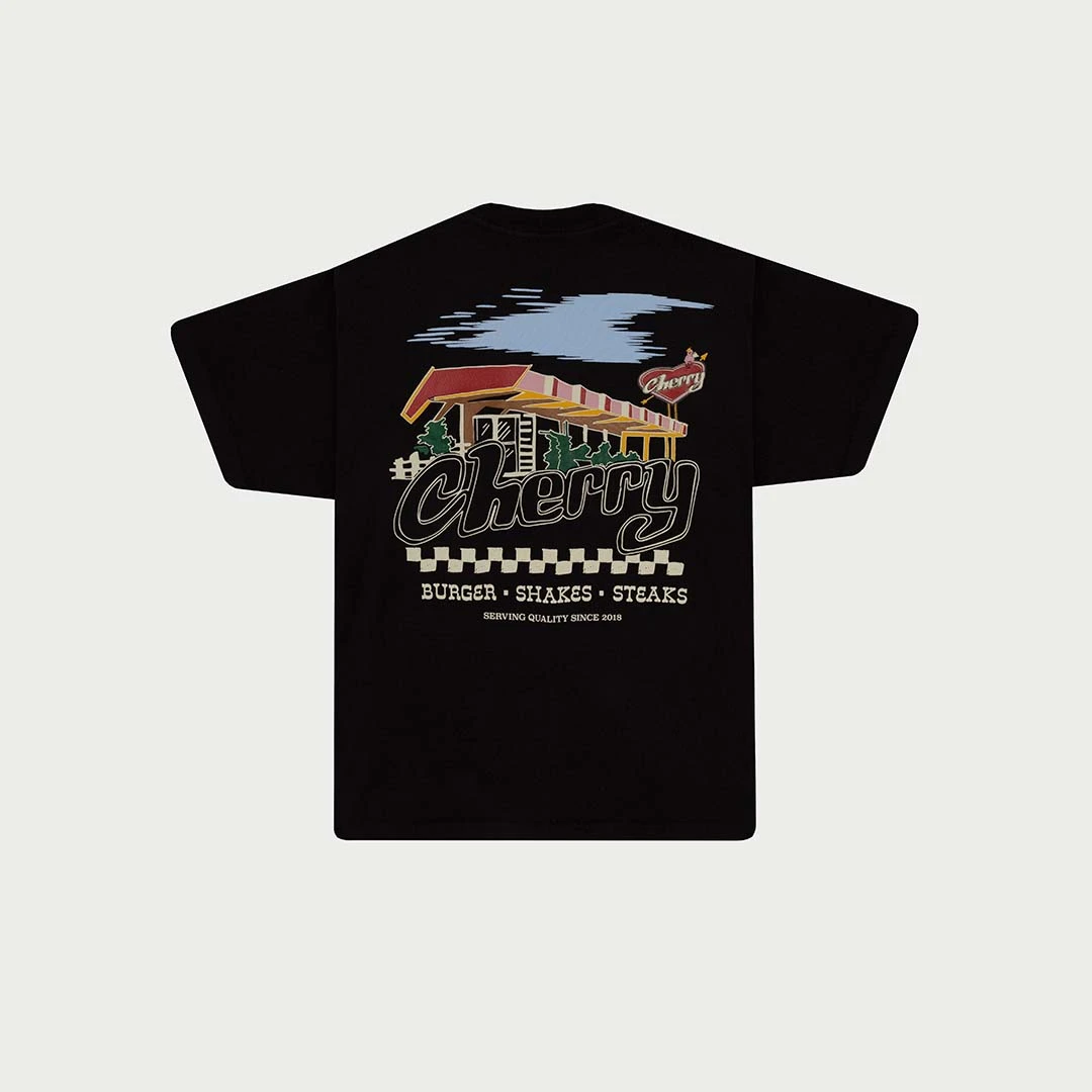 6.5oz 100% USA Cotton. Hand printed with plastisol ink on front chest and back. Rinsed and washed for soft hand-feel.Â