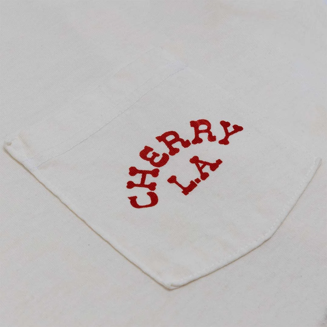 6.5oz USA 100% Cotton Long Sleeve Pocket T-Shirt. Garment dyed then washed for soft hand-feel. Hand printed with plastisol ink on front and back.Â