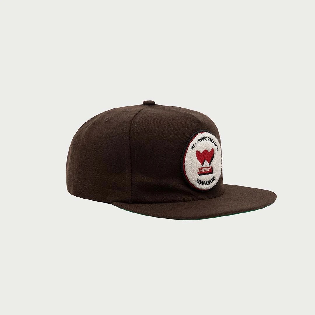 100% Wool Unstructured 5 Panel Snap Back Hat. Custom chenille patch on front.Â
