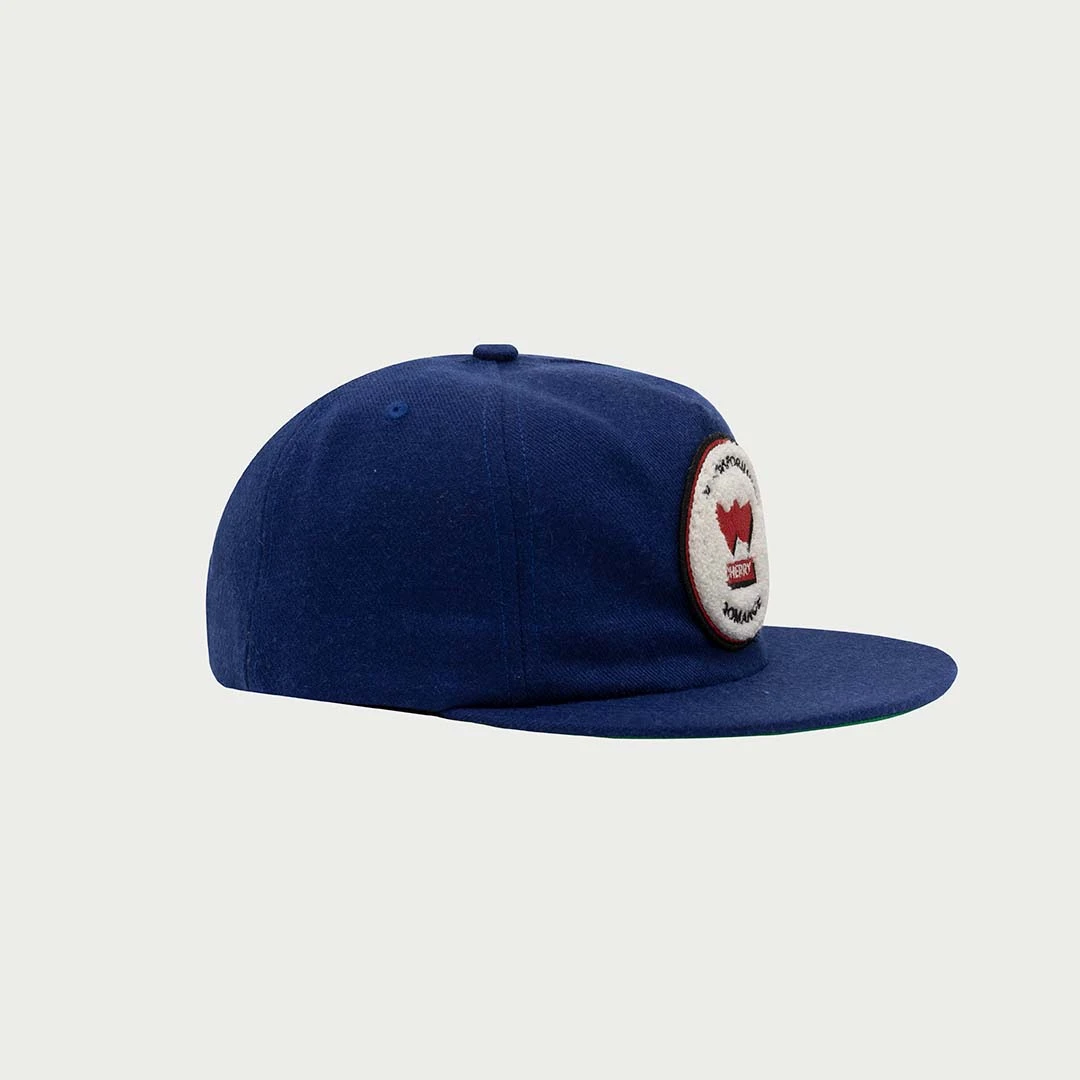 100% Wool Unstructured 5 Panel Snap Back Hat. Custom chenille patch on front.Â