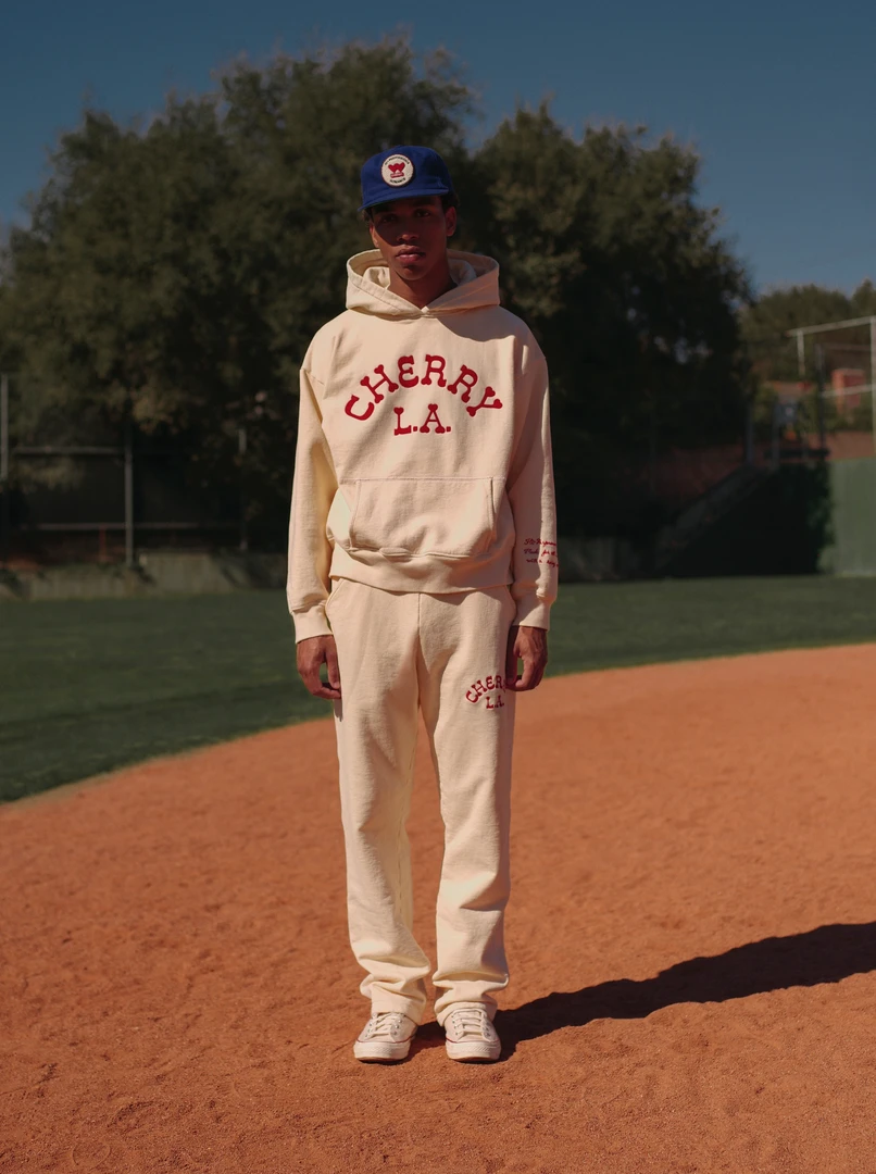100% Cotton Mid-weight Fleece Straight Leg Sweatpants. Relaxed Lounge Fit. Jersey Waistband for clean finish. Garment dyed and washed for soft vintage hand-feel. Embroidery on left leg.Â