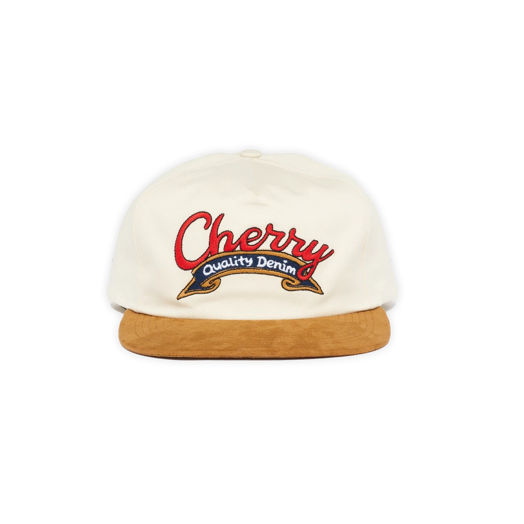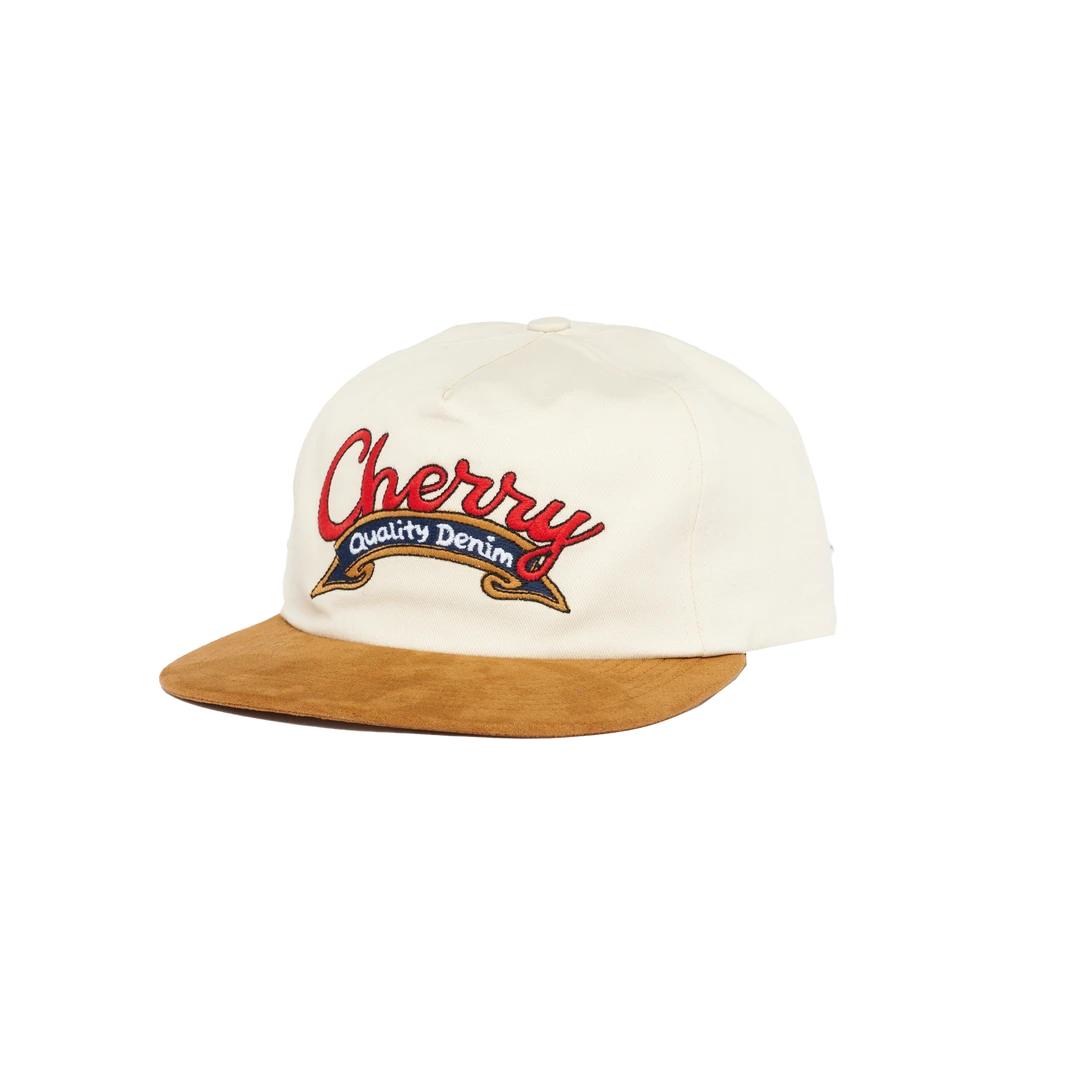 100% Cotton Twill Unstructured 5 Panel Snap Back Hat. Suede Brim. Embroidery on front panel.Â