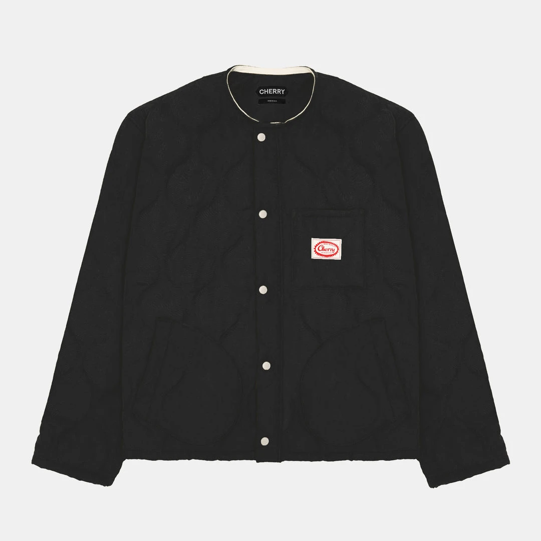 Our quilted shell jacket is made from a brushed nylon with a polyester fill for warmth and structure. We took the classic quilting style and reimagined the silhouette in order to create a piece built to be layered. Natural herringbone tape and pocket linings pair with our seasonal patch turn a vintage classic to an elevated staple.