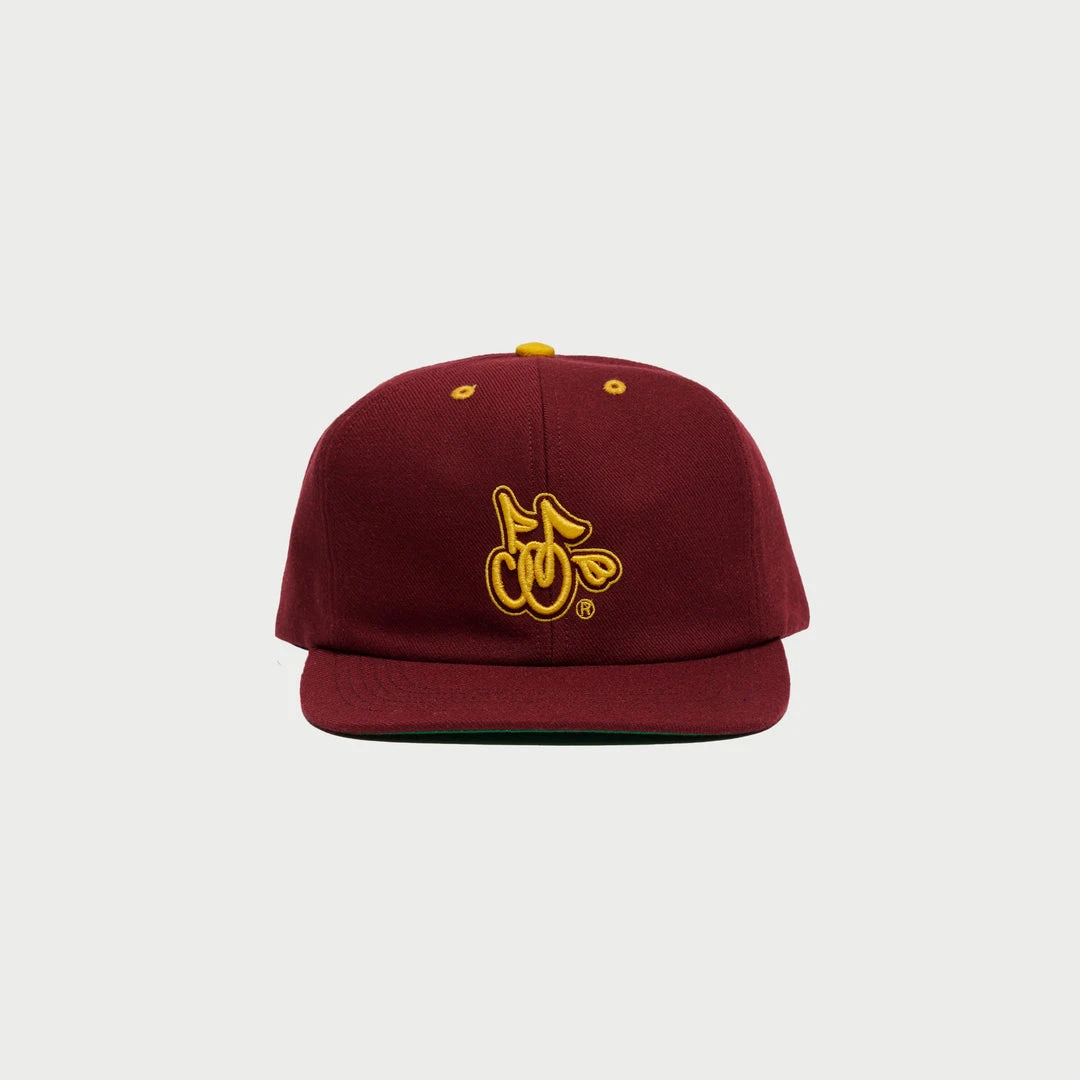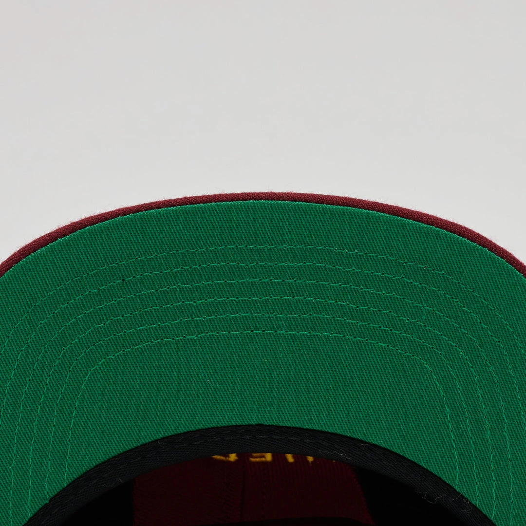 100% Wool Unstructured 6 Panel Snap Back Hat. With Embroidery on front and back. Green Brim.Â
