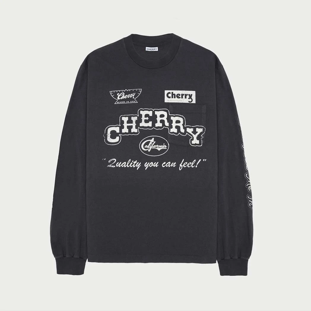 6.5oz USA 100% Cotton Long Sleeve Pocket T-Shirt. Garment dyed then washed for soft hand-feel. Hand printed with plastisol ink on front and back.Â