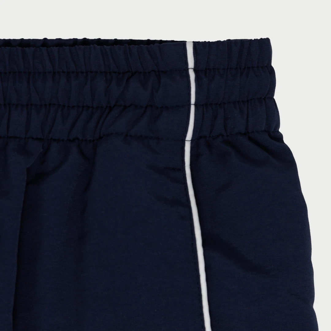 1/2 lined modal, 1/2 lined nylon straight leg. Leg gussets with tonal zipper. Western detailing on back pocket. Logo embroidery detail on left leg.Â
