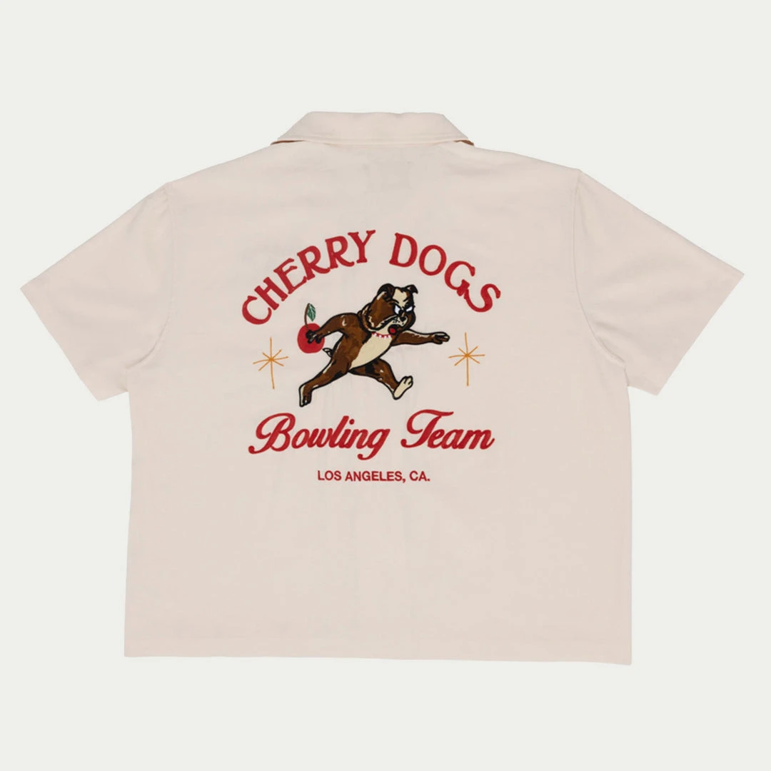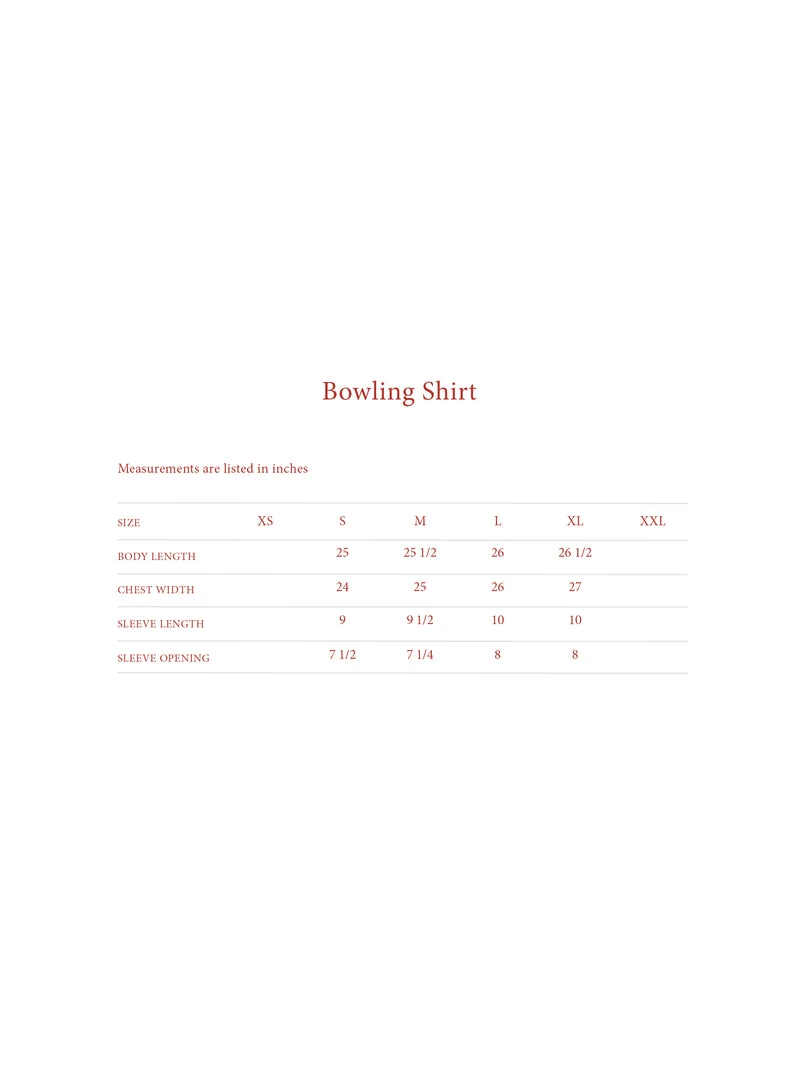 Our Bowling Shirt is a boxy fit made with a Viscose rayon blend fabric.